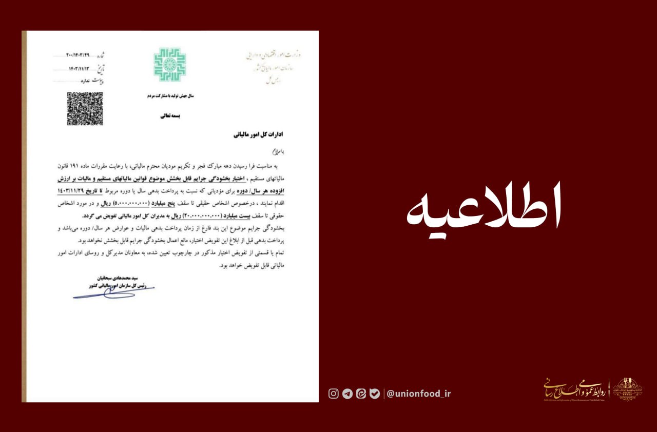 📣 روابط عمومی و اطلاع رسانی اتحادیه رستوران و چلوکباب تهران