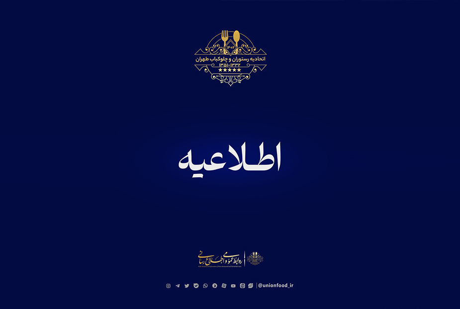اطلاعیه روابط عمومی اتحادیه رستوران و چلوکباب تهران